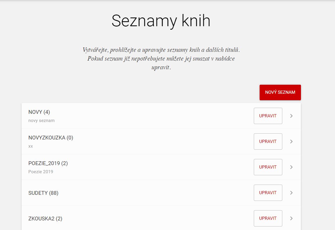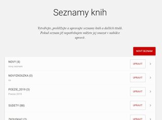 Kliknutím na tlačítko „UPRAVIT“ se dostaneme do detailu seznamu, kde můžete upravit název seznamu a mazat jednotlivé knihy pomocí tlačítka „SMAZAT“. Před samotným smazáním se web zeptá, zda si danou operaci skutečně přejete provést. V tuto chvíli je možné mazat pouze jednotlivé knihy, nikoliv více knih najednou. Můžete smazat také celý seznam najednou.