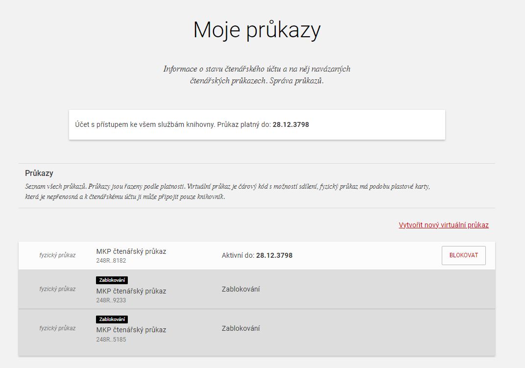 Vidíte zde také číslo a datum platnosti vašeho čtenářského průkazu.