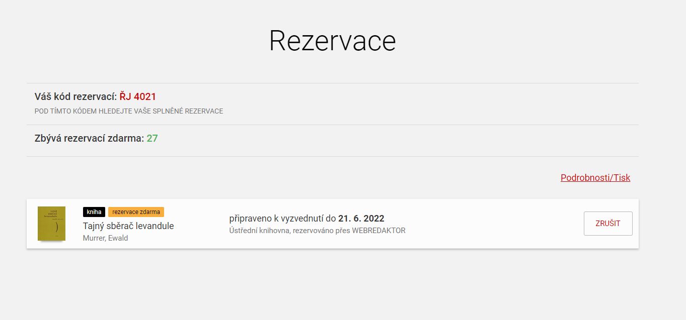 Na dlaždici “Rezervace” se dozvíte stav aktuálních rezervací a vidíte kód, pod kterým si můžete rezervaci vyzvednout na dané pobočce. Tip! Přečtěte si návod, jak spravovat rezervaci.
