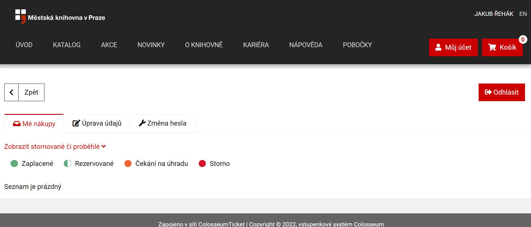 V dlaždici „Vstupenky" nalezente vstupenky na akce v sálech Ústřední knihovny, které jste si zakoupili online. Přečtěte si návod, jak kupovat vstupenky online.